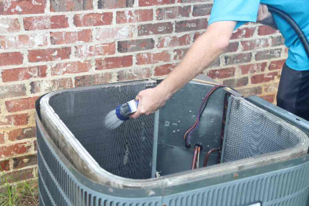 Man cleaning a air conditioning unit